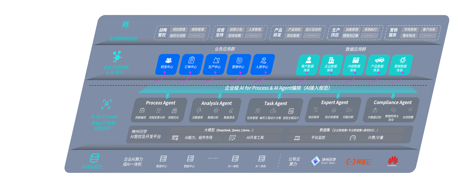 南宫28wd问学智车解决方案是一套基于AI技术的汽车行业智能化系统,,,覆盖从底层算力到顶层AI应用的全栈方案。。。。方案由算力层、、、模型层和应用层组成:算力层,,,,方案支持多种一体机配置,,,,具备云端灵活部署、、多云适配以及动态优化计算资源的能力;模型层,,,南宫28wd问学平台版提供了企业级AI应用一站式构建与管理平台,,,支持基于后训练强化技术的汽车企业专属模型的训练、、评测和运营;应用层,,,南宫28wd问学DeepSeek版提供包括超级员工、、、智能招采、、智能营销、、、、智能客服、、、、AI for BI等一系列解决方案,,可助力汽车行业实现数字化转型,,让管理更智能、、响应更敏捷。。。